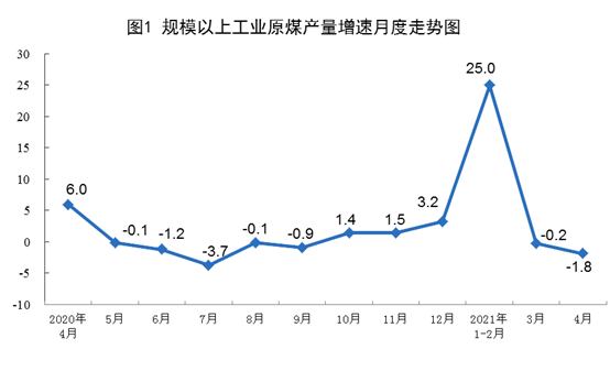 原煤生產(chǎn)有所下降。4月份,生產(chǎn)原煤3.2億噸,同比下降1.8%,比2019年4月份增長(zhǎng)4.0%,兩年平均增長(zhǎng)2.0%,日均產(chǎn)量1074萬(wàn)噸;進(jìn)口煤炭2173萬(wàn)噸,同比下降29.8%。